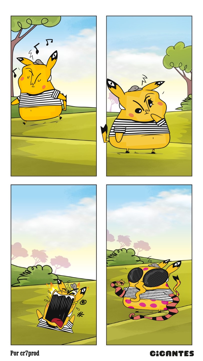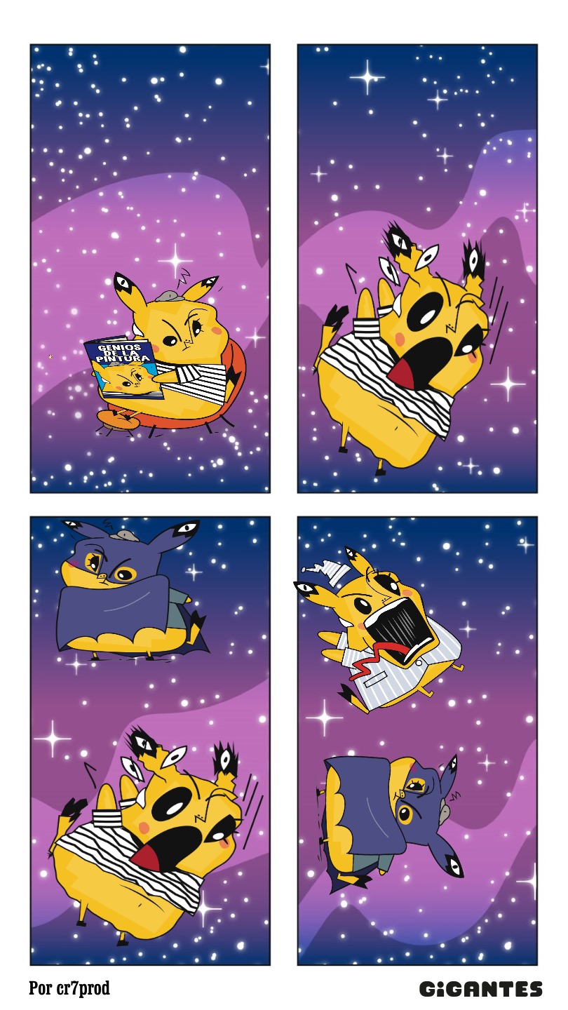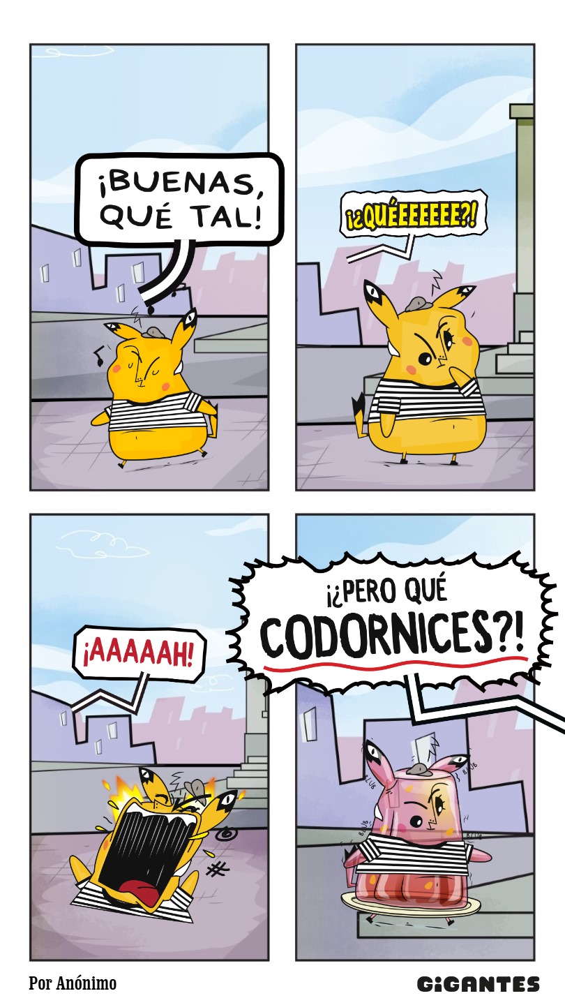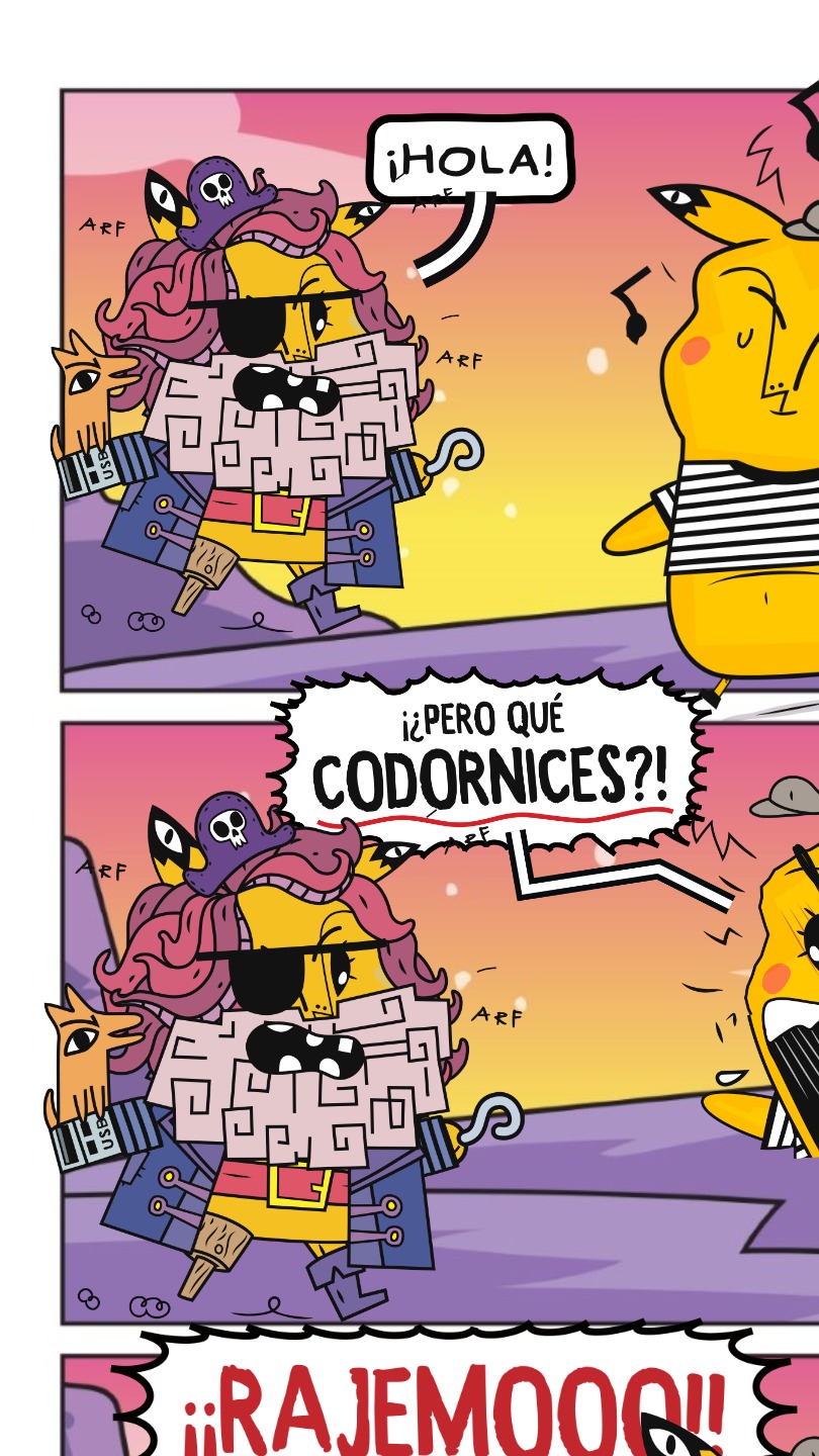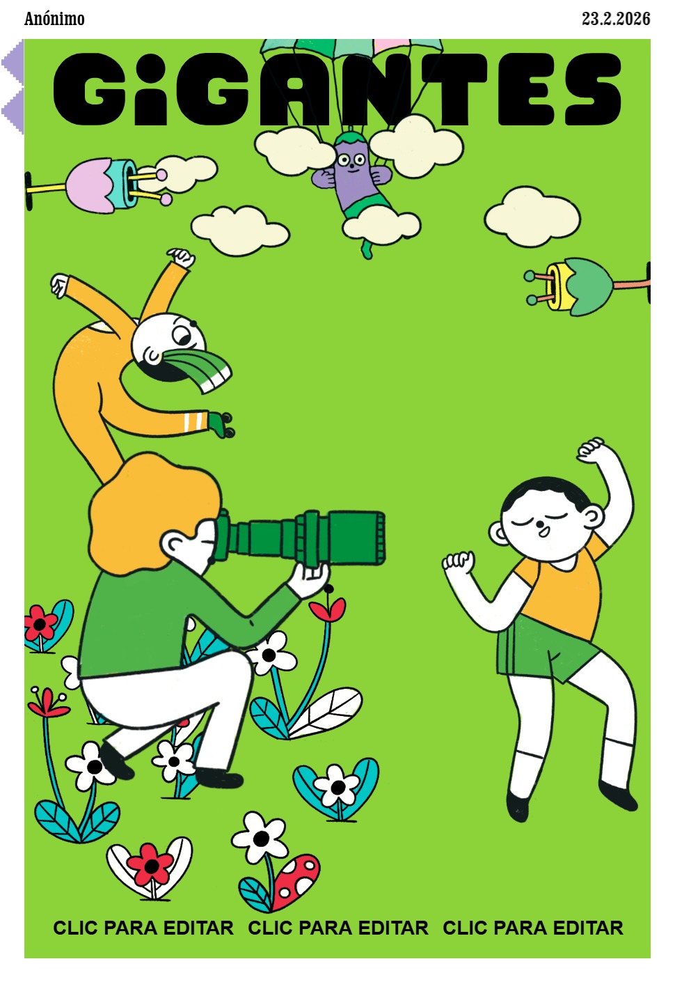 Llegaste a una ciudad con una actividad disparatada. Un dinosaurio y un inmenso gato surfean en la rambla. El superhéroe pasea en una nube y el sol tiene flotador. Niños y niñas juegan; pasean en auto, bicicleta, moto, patineta y silla de ruedas. Un mono corretea, una señora hace yoga. Un edificio antiguo con un cartel de Gigantes tiene 4 ventanales. ¡Cuidado! Dentro de ellas hay mucha acción. La ventana Arte tiene manos y pies, con pinceles y tijeras. En la Ventana Redacción hay una máquina de escribir y muchas manos sobre ella. En la Ventana Chatbot aparecen caritas con cuellos de serpientes. En la Ventana Picacho se asoma el personaje que es naranja y tiene orejas de conejo con ojos en la punta. Un tentáculo de pulpo sale de la pared.
