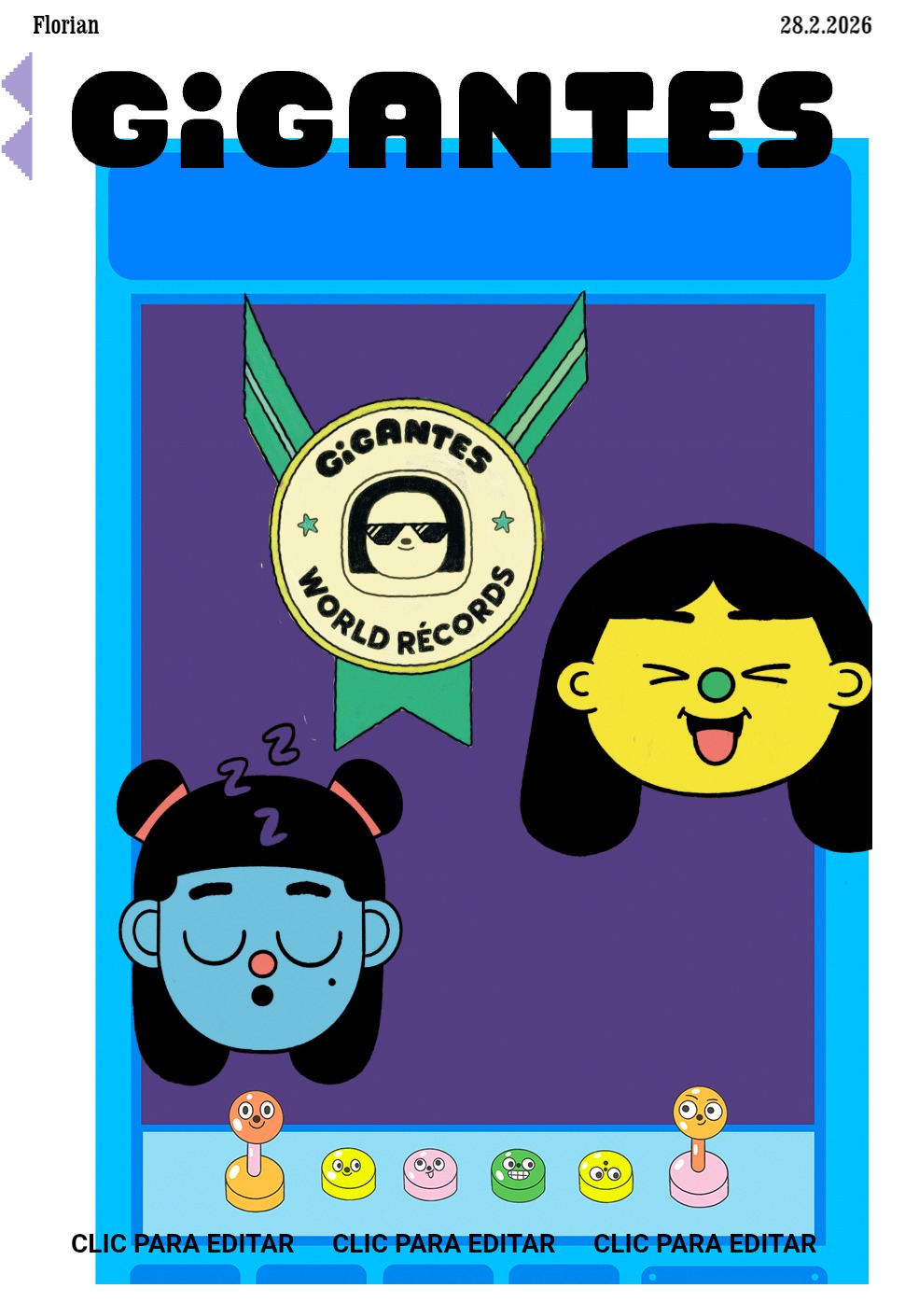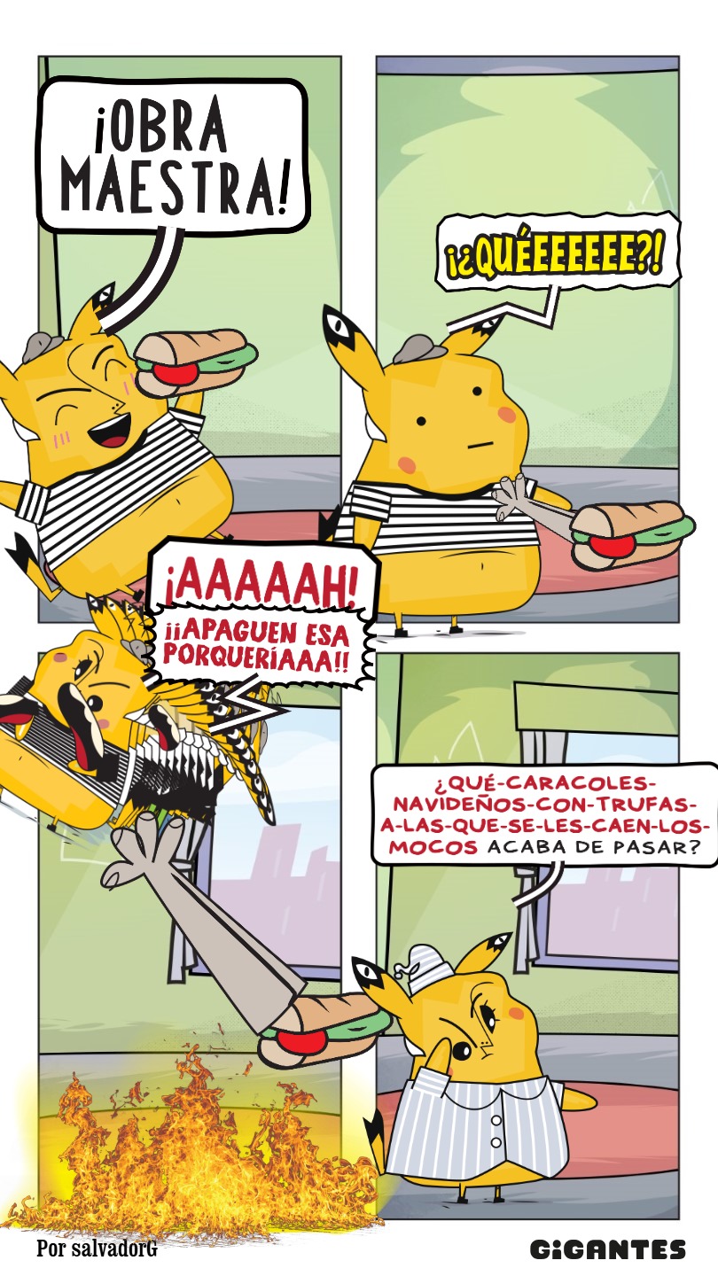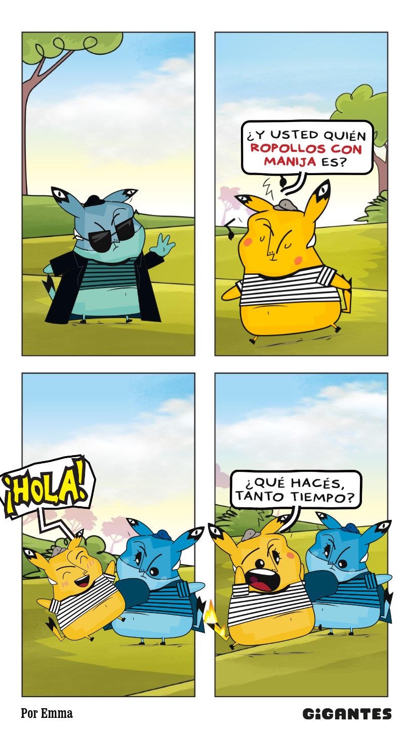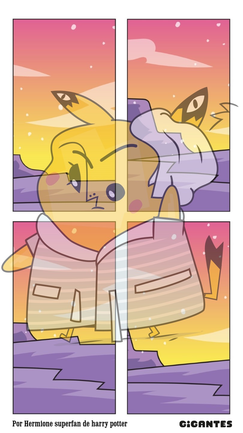 Llegaste a una ciudad con una actividad disparatada. Un dinosaurio y un inmenso gato surfean en la rambla. El superhéroe pasea en una nube y el sol tiene flotador. Niños y niñas juegan; pasean en auto, bicicleta, moto, patineta y silla de ruedas. Un mono corretea, una señora hace yoga. Un edificio antiguo con un cartel de Gigantes tiene 4 ventanales. ¡Cuidado! Dentro de ellas hay mucha acción. La ventana Arte tiene manos y pies, con pinceles y tijeras. En la Ventana Redacción hay una máquina de escribir y muchas manos sobre ella. En la Ventana Chatbot aparecen caritas con cuellos de serpientes. En la Ventana Picacho se asoma el personaje que es naranja y tiene orejas de conejo con ojos en la punta. Un tentáculo de pulpo sale de la pared.