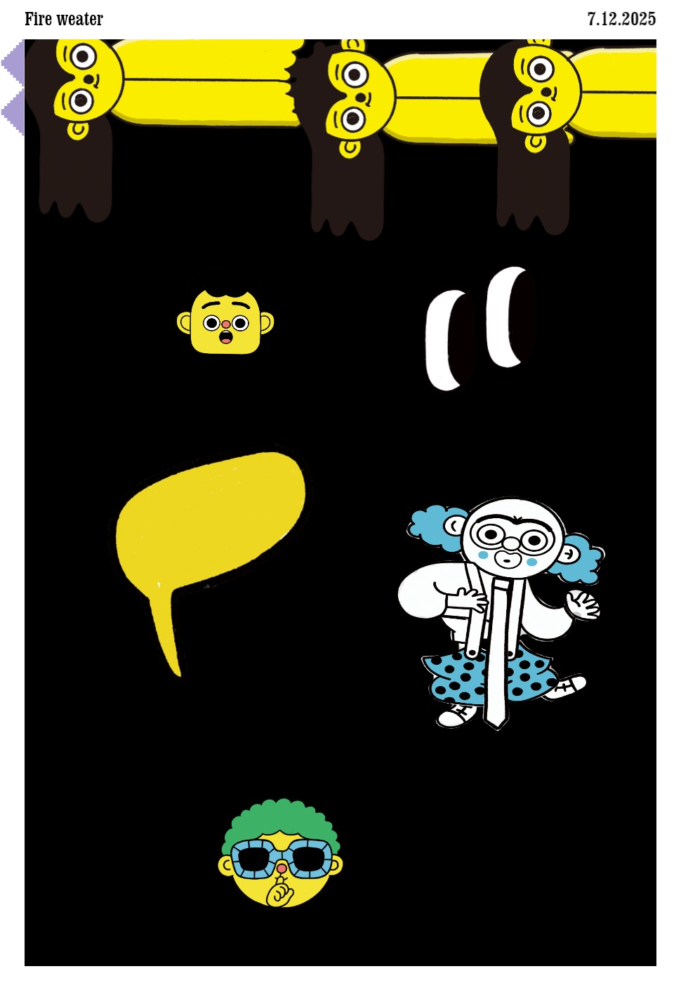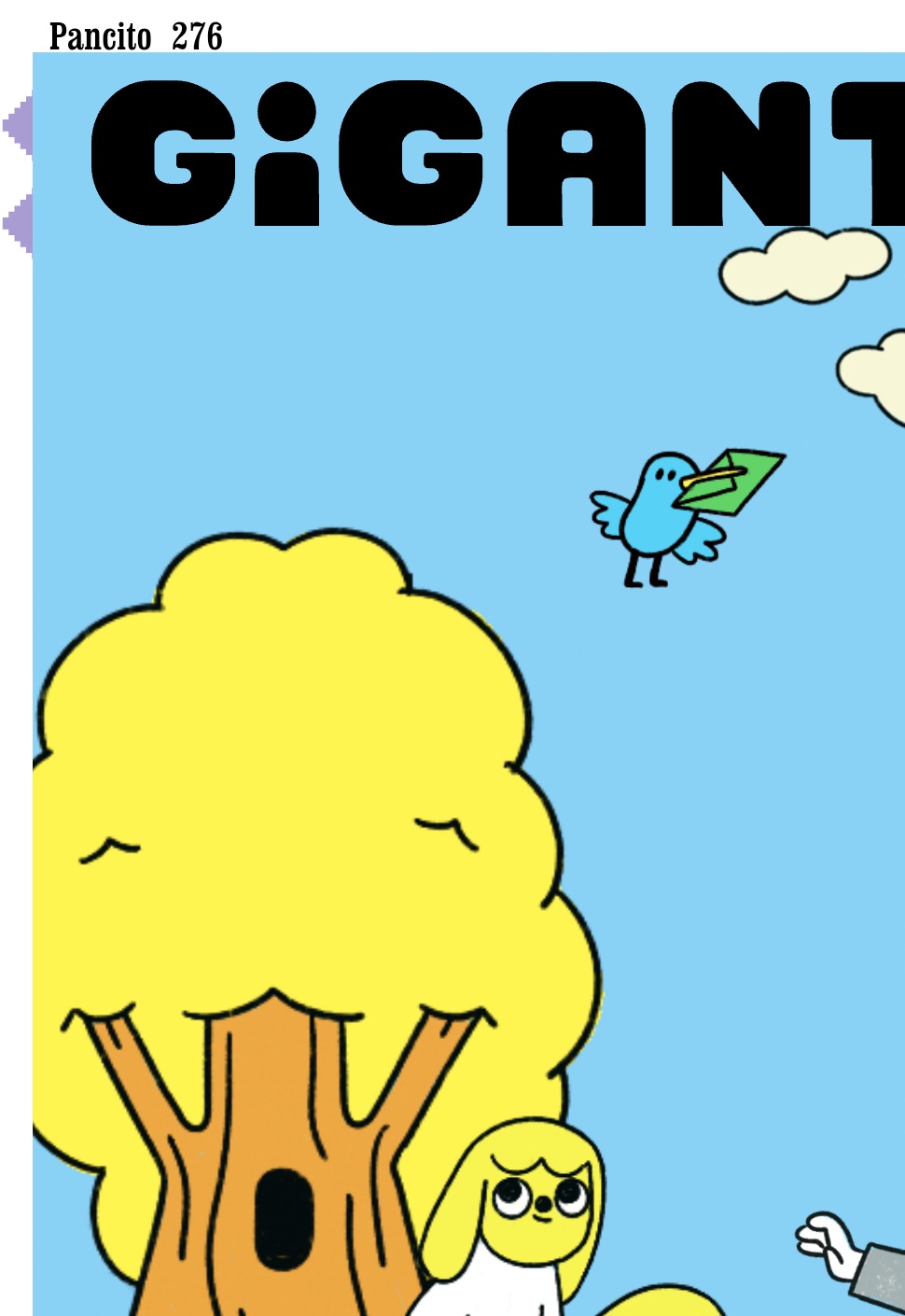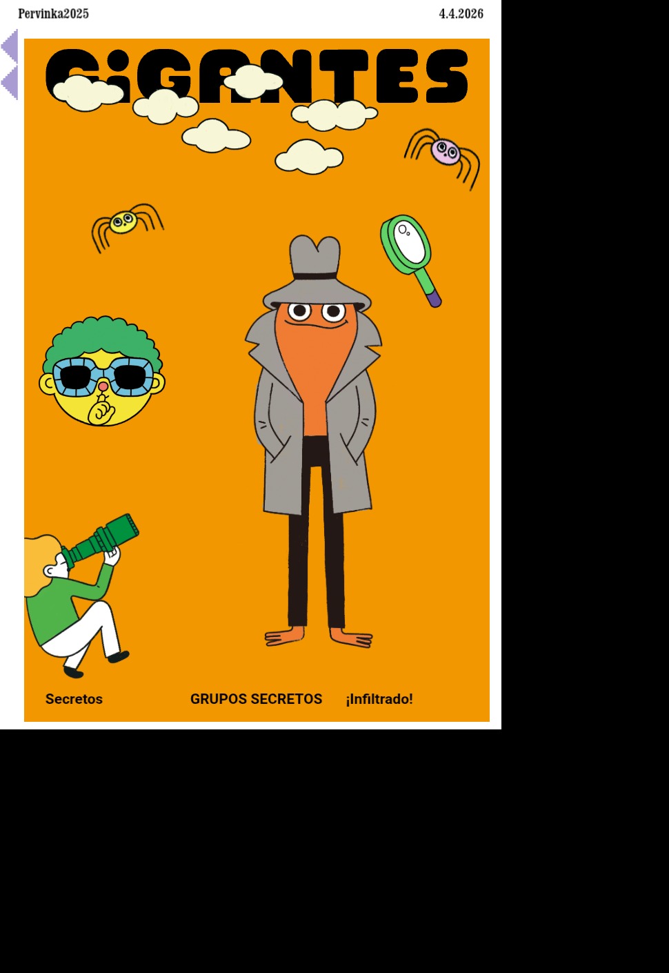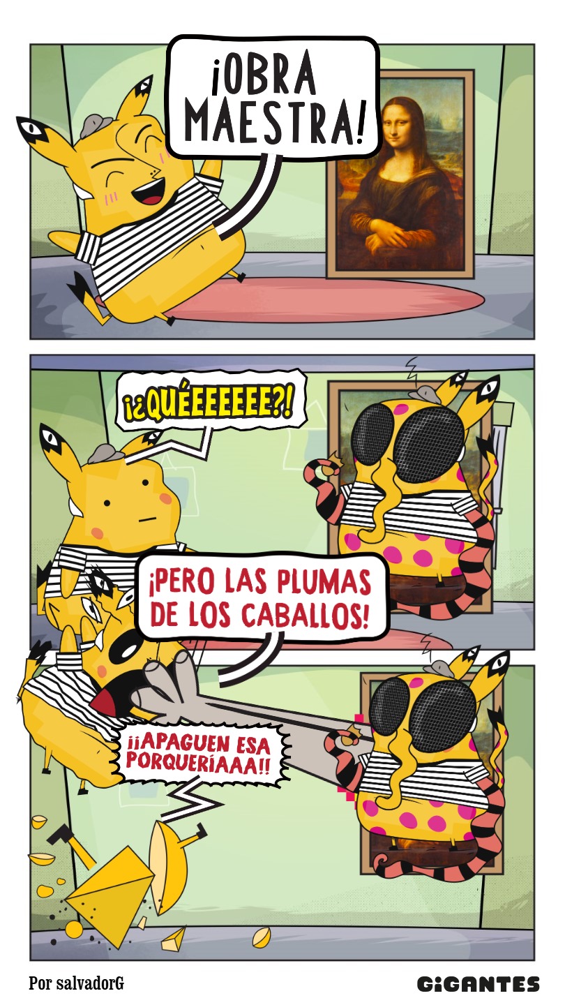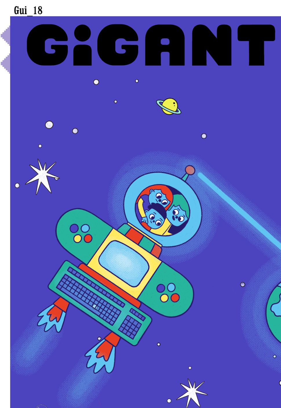 Llegaste a una ciudad con una actividad disparatada. Un dinosaurio y un inmenso gato surfean en la rambla. El superhéroe pasea en una nube y el sol tiene flotador. Niños y niñas juegan; pasean en auto, bicicleta, moto, patineta y silla de ruedas. Un mono corretea, una señora hace yoga. Un edificio antiguo con un cartel de Gigantes tiene 4 ventanales. ¡Cuidado! Dentro de ellas hay mucha acción. La ventana Arte tiene manos y pies, con pinceles y tijeras. En la Ventana Redacción hay una máquina de escribir y muchas manos sobre ella. En la Ventana Chatbot aparecen caritas con cuellos de serpientes. En la Ventana Picacho se asoma el personaje que es naranja y tiene orejas de conejo con ojos en la punta. Un tentáculo de pulpo sale de la pared.