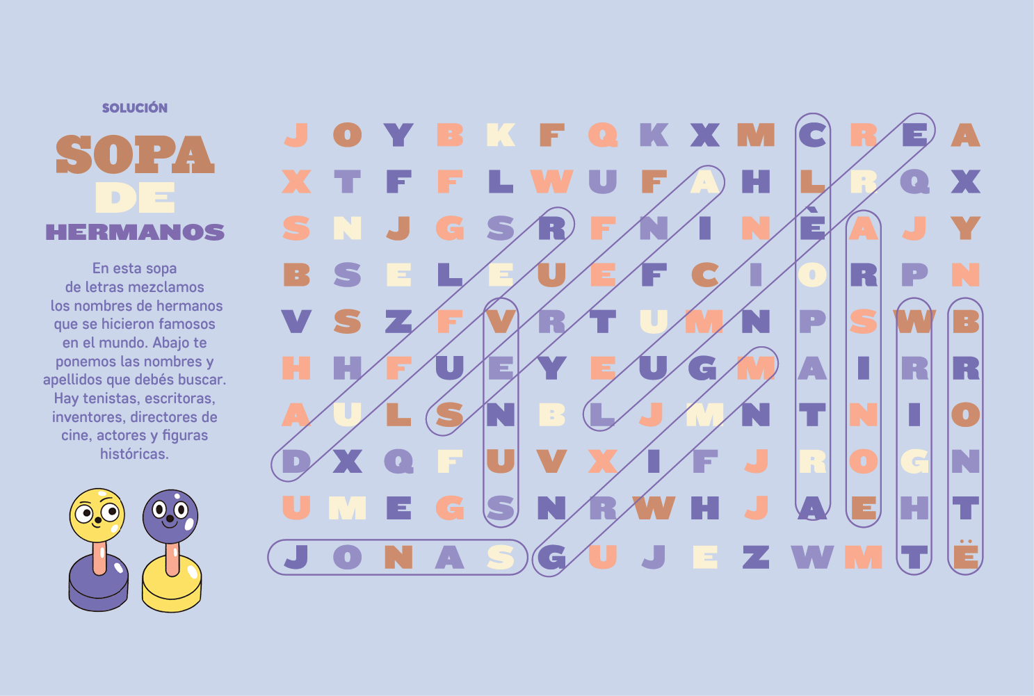 Diez nombres de hermanos famosos estaban perdidos en la sopa de letras. Aquí están.